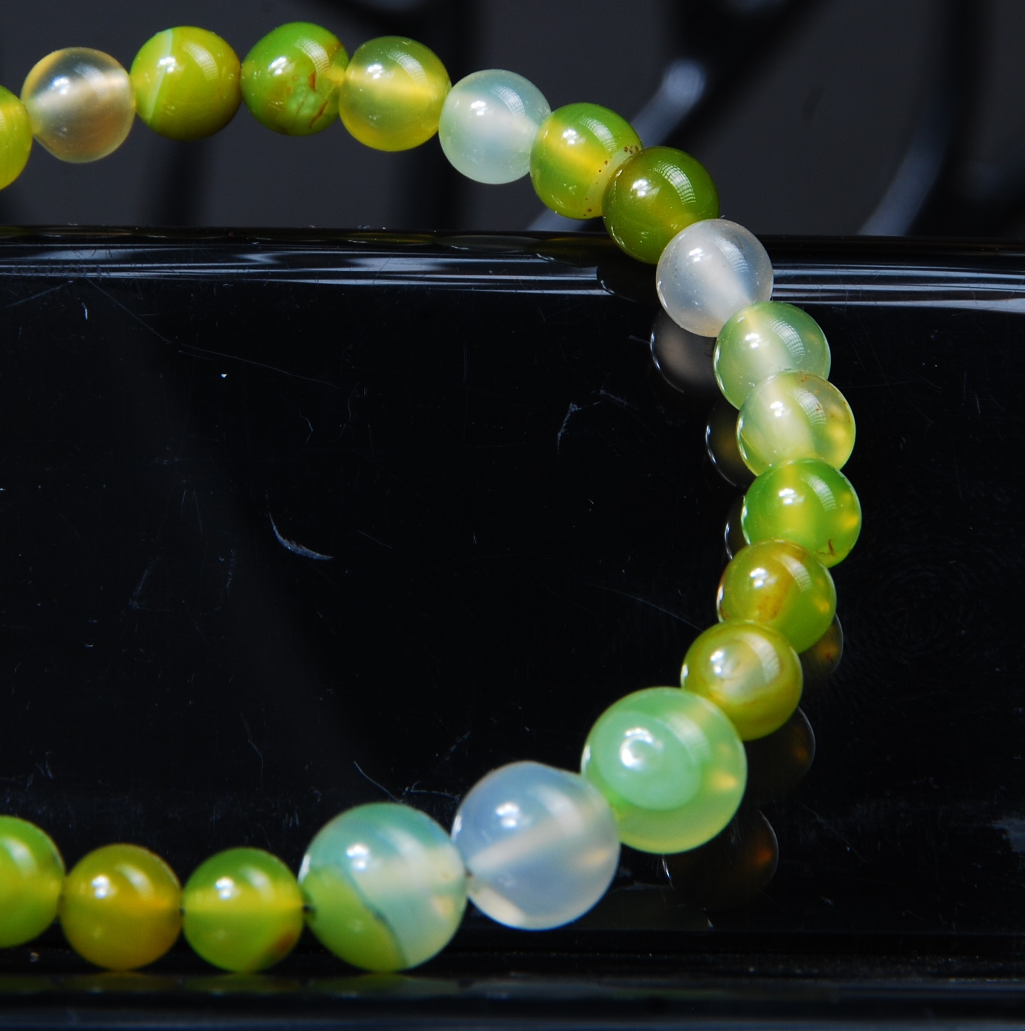 دستبند هفت چاکرا با سنگ عقیق سلیمانی سبز