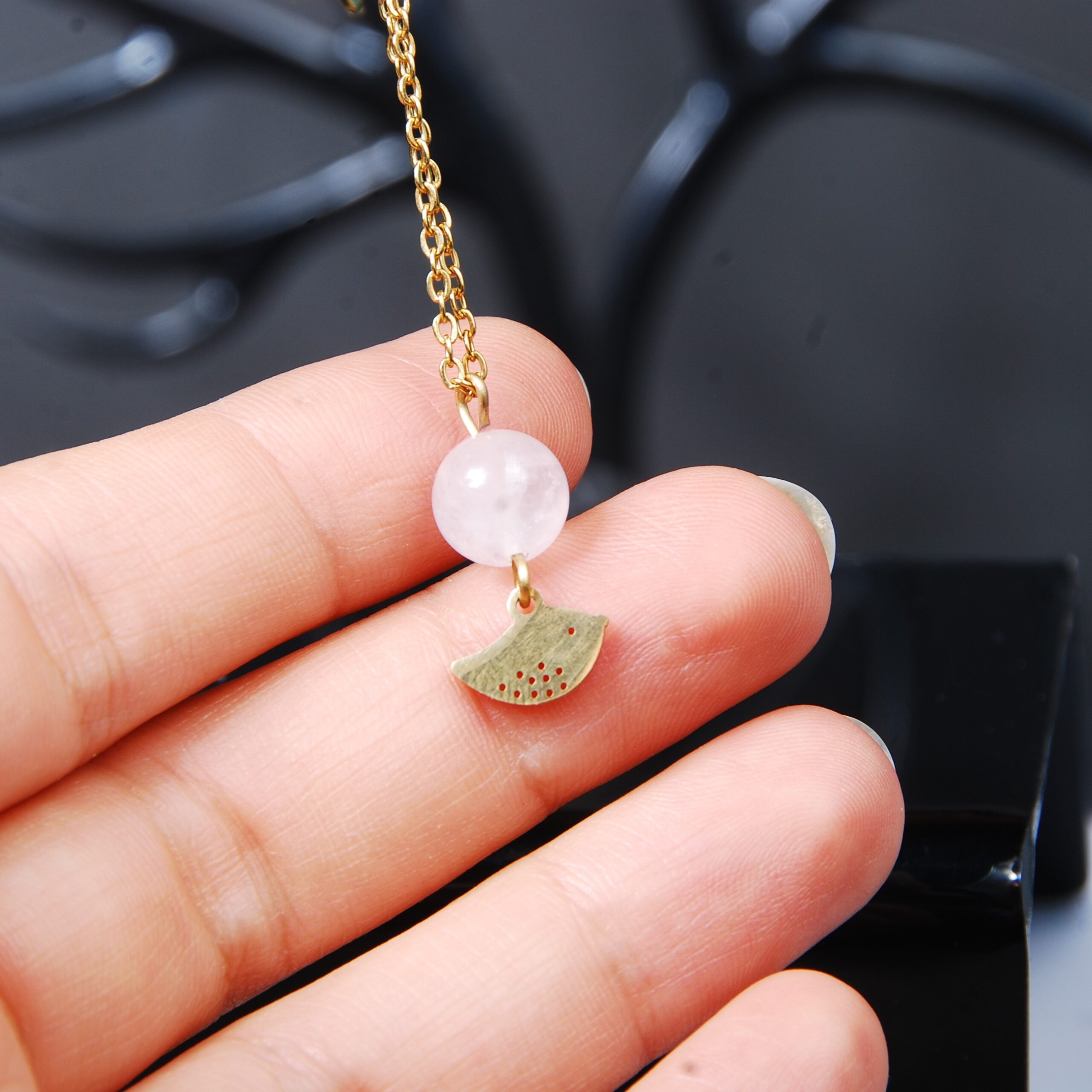 خانه گردنبند گردنبند رز کوارتز همراه با گنجشک 3.45گرم (زنجیر رنگ ثابت)