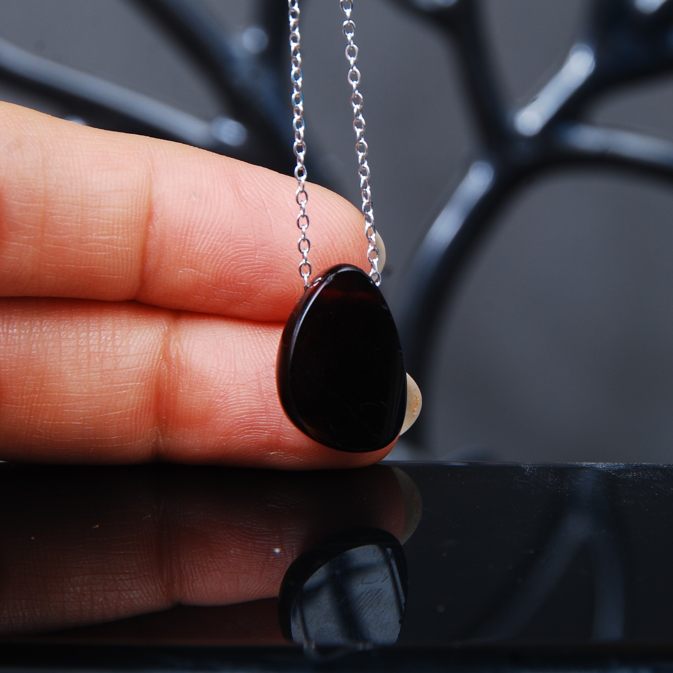 نوعی سنگ عقیق است که به دلیل رنگ سیاه عمیق و درخشش شیشه ای اش معروف است. این سنگ در واقع از کانی کوارتز تشکیل شده و به دلیل ناخالصی های موجود در آن، مانند آهن، منگنز و کربن، به رنگ مشکی در می آید.