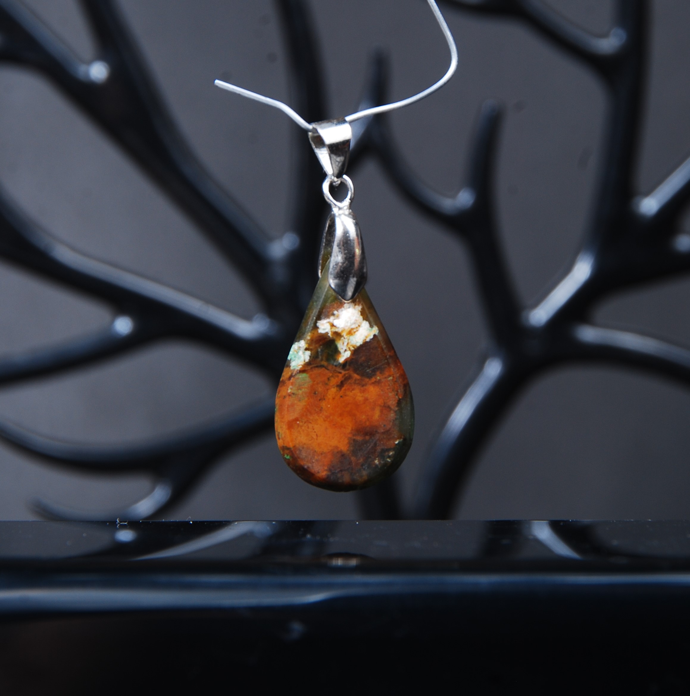 گردنبند عقیق سبز و قهوه ای اشک 2.58گرم